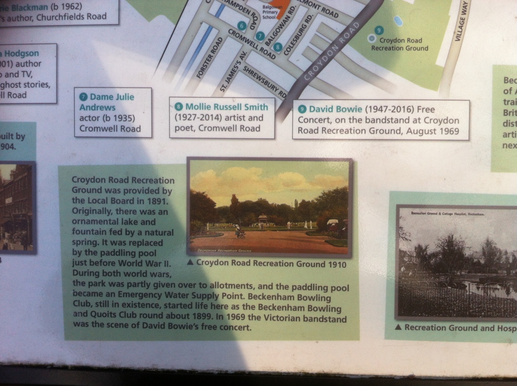 “My mother lived in Westbury Road up until 2016. [She died in 2017.] She remembered Julie Andrews being on Cromwell Road. I well remember David Bowie and the concert in the Rec. and seeing him at the Three Tuns and occasionally in the Prompt corner café, where he was always approachable.”